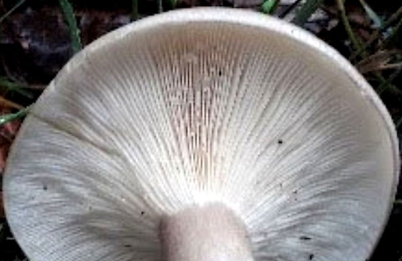 Sans odeur particulière, avec un chapeau nettement cocardé de brunâtre, et ces gouttes sous les lames...