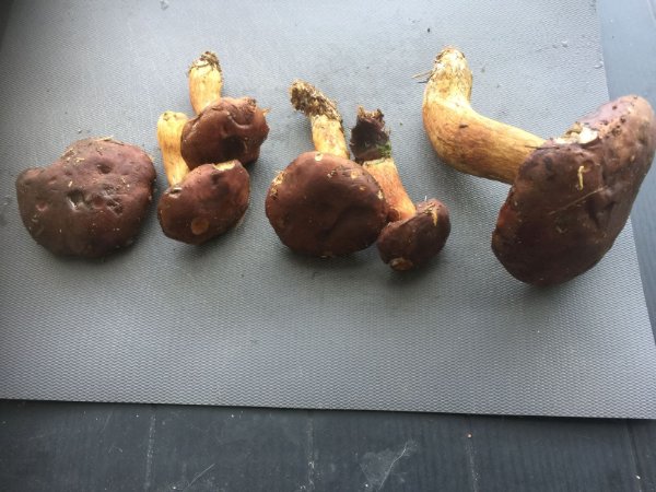 lors de ma sortie du jour j'ai découvert les bolets ci-dessous. La tête est très brune, la chair ne bleuit pas au contact, mais se teinte de gris avec le temps. Les pieds peuvent être prononcés ou élancés.