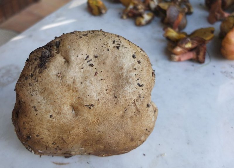 Chapeau beige grisatre 12 cm, tubes plutôt rouges, odeur agréable fongique, goût sucré