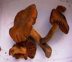 Lames rougeâtres légèrement décurrentes, espacées devenant de couleur rouille, cortine jaune.